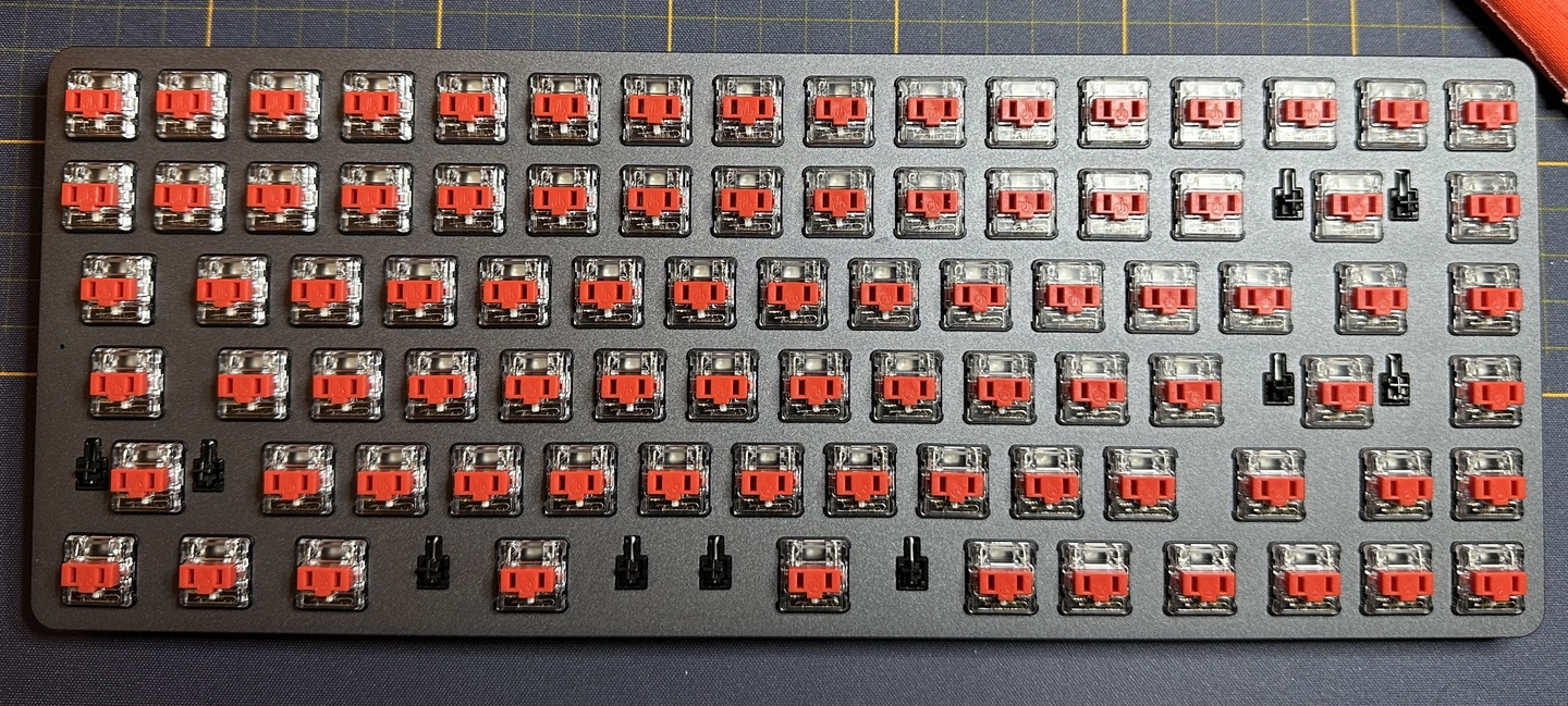 My summary of this board is “if you want a keychron, but choc”. I’ll talk about the assembly in a bit but the real question is if the board is even worth your time. With caveats, I’d say yes. If you’re in the market for a keychron-like choc board, and don’t need any fun firmware tweaks, the L75 is a perfectly fine board. And, perhaps more importantly, if you want a choc 75% keyboard with the row stagger layout of a “regular” keyboard, there aren’t many other options out there.