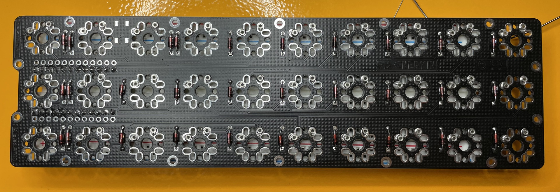 To be honest, I mostly got the gherkin to practice soldering. I didn’t really know what I was getting myself into. The Gherkin is a …well, it’s a boutique board for a passionate community. The creator has been through endless variations of this pattern and it works really well for them.