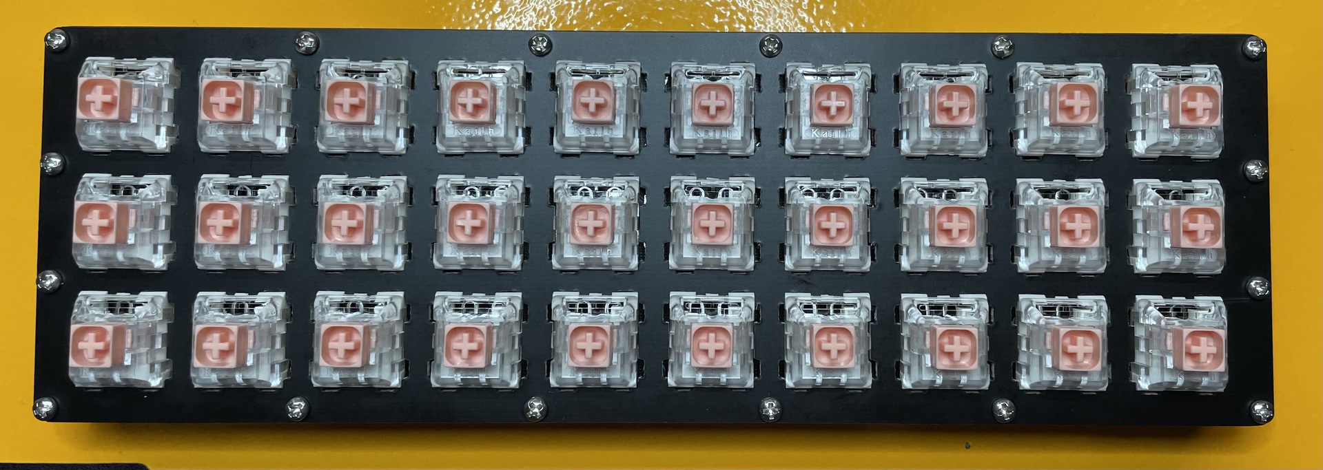 In terms of the build, the PCB is fully reversible and uses through-hole diodes. While you can use Mill-Max sockets (as I did) to enable hotswap, the board is really designed with soldered switches in mind. There are some design decisions that make this an oddly challenging board to build.