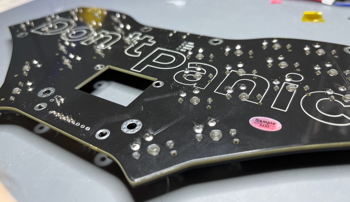 You can’t really tell from my photos but there’s an interesting flourish in that the diodes are, when completed, housed inside the LED opening in the Choc key switch. They are completely protected. Pete tells me this was also inspired by the Ferris.