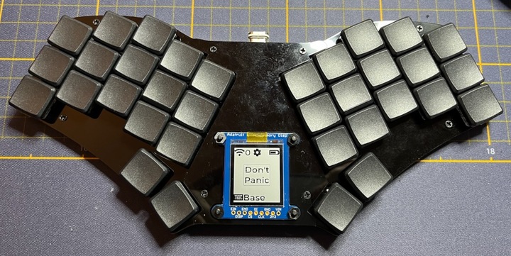 The Zaphod is a BLE / USB unibody split keyboard with three rows, five columns per half, and two thumb keys per side. It has aggressive stagger, inspired by the Ferris split keyboard, and you really should download the layout tester to make sure you like it.